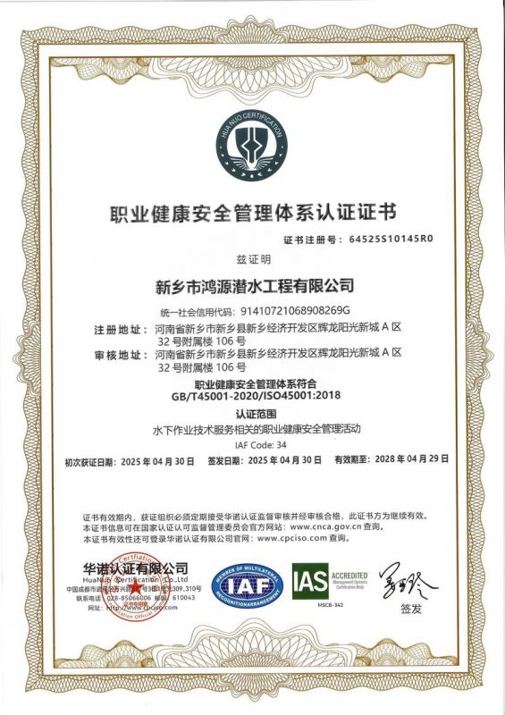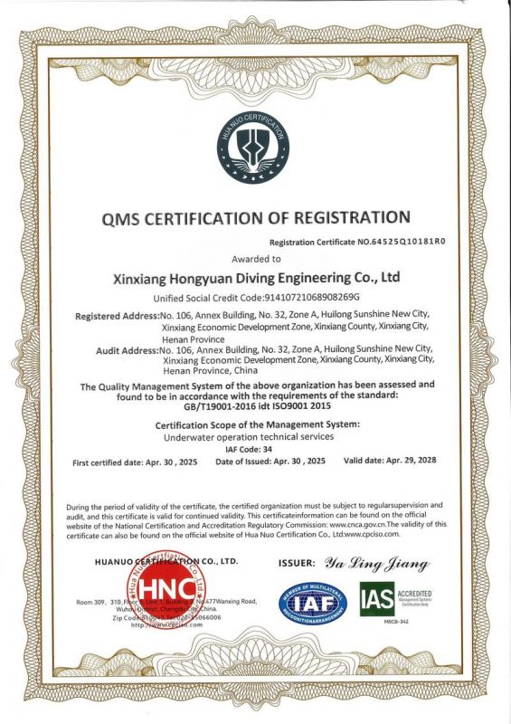 新鄉(xiāng)市鴻源潛水工程有限公司,有從事潛水行業(yè)二十多年的潛水團(tuán)隊。公司具有獨立法人資格,注冊資金600萬元。   公司的潛水人員、潛水檢測人員、潛水焊接人員均經(jīng)過正規(guī)培訓(xùn),全部持有國內(nèi)權(quán)威機(jī)構(gòu)頒發(fā)的資質(zhì)證書。我公司水下焊接可靠,質(zhì)量優(yōu)良,技術(shù)過硬,可水下焊接鋼管樁,水下焊接犧牲陽極鋅塊,水下焊接連接梁,水下封堵焊接等等施工,報價合理,拒絕暴利,竭誠為您服務(wù)!水下電焊工程,水下電焊報價合理水廠電廠的水池、水道清淤、泵房清理、管道鋪放、攔污柵清污、更換閘門起落、導(dǎo)流洞、水庫壩體等維修施工水下補強加固:對水利電力系統(tǒng)水庫、大壩及沿海內(nèi)河港口、碼頭等水工建筑物水下鋼結(jié)構(gòu)或混凝土結(jié)構(gòu)缺陷進(jìn)行。無論是對現(xiàn)在或?qū)恚紝⑹且豁椃浅S幸饬x的工作。水下焊接將成為水下作業(yè),水下安裝,水下維修等水下作業(yè)工程中不可或缺的重要工藝手段.公司堅持“先進(jìn)的技術(shù)設(shè)備.優(yōu)質(zhì)的服務(wù)質(zhì)量.服務(wù)效率.熱情的服務(wù)態(tài)度,為生產(chǎn)經(jīng)營理念,以拒絕暴利合理收費為原則立足全國市場。我們將以優(yōu)質(zhì)的產(chǎn)品與售后服務(wù)來打造用戶良好體驗。愿同新老客戶竭誠合作、互惠互利、共創(chuàng)輝煌!水下電焊工程,水下電焊報價合理,鋼圍堰清淤公司鴻源-水下電焊工程,水下電焊報價合理,鋼圍堰清淤公司,水下電焊工程。      新鄉(xiāng)市鴻源潛水工程有限公司我公司成功打造鴻源優(yōu)質(zhì)服務(wù)。公司的潛水人員、潛水檢測人員、潛水焊接人員均經(jīng)過正規(guī)培訓(xùn),全部持有國內(nèi)權(quán)威機(jī)構(gòu)頒發(fā)的資質(zhì)證書。經(jīng)過多年經(jīng)營,公司具備公司具有獨立法人資格。